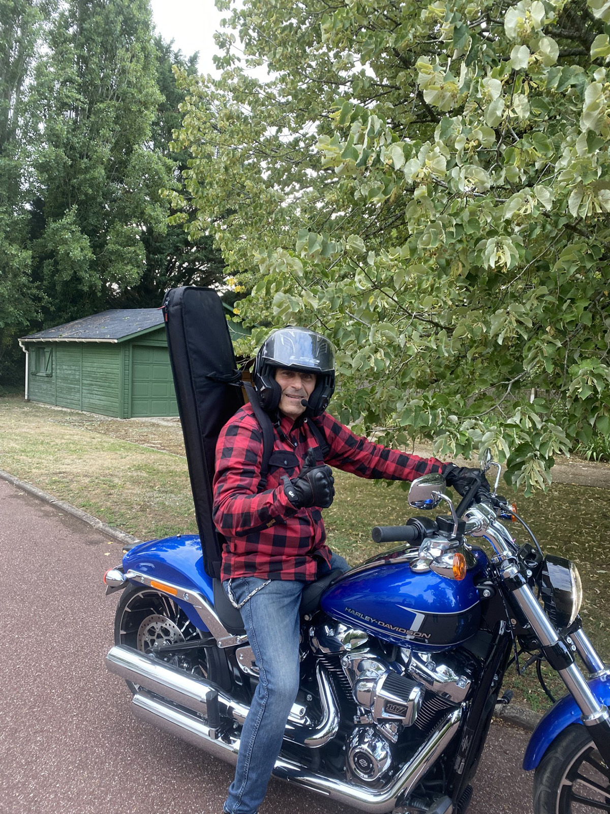 Ma dernière image d’Albert… une image souriante d’un motard charmant dans mon jardin !
